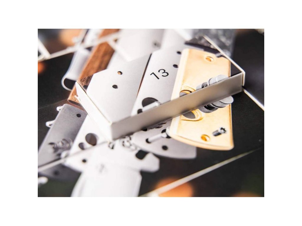 Adventní kalendář Böker Plus Urban Trapper není hračka pro děti – je to kompletní sada pro sestavení plnohodnotného kapesního nože podle legendárního návrhu Brada Zinkera. V této edici navíc s přepracovaným button-lockem, takže nejen že skládáš, ale i zamykáš stylově.