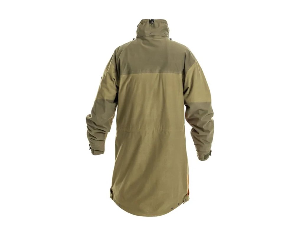Anorak Dovrefjell Jeger’n Original 2.0 je určen pro ty, kteří tráví venku dlouhé hodiny v proměnlivém počasí, a potřebují kombinaci ochrany, pohodlí a ticha. Tento model vychází ze stejné konstrukce a materiálů jako populární bundy a komplet, ale klade důraz na prodloužený střih, kdy anorak spadá níže přes stehna pro lepší krytí při pohybu nebo sezení.