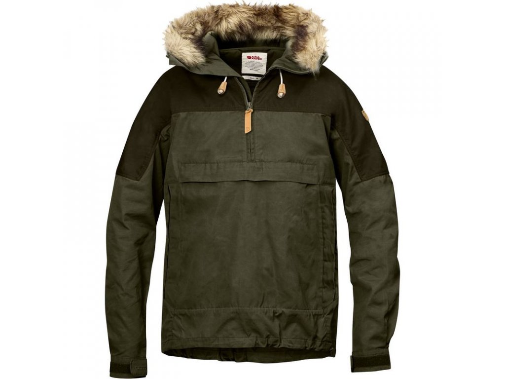 Dobře odvětrávaná bunda přes hlavu z materiálu G-1000 s dvojitou vrstvou tkaniny přes ramena. Zipy po stranách, prostorné kapsy a technická kapuce s odepínatelným lemem ze syntetické kožešiny.