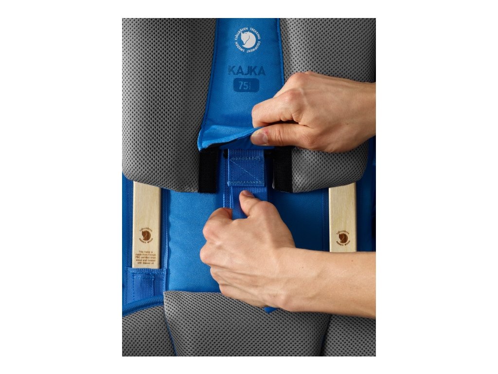 Jednoduchý a odolný batoh bez zbytečností s řadou skutečně funkčních detailů. I přes svůj poměrně skromný zevnějšek patří Kajka k moderním batohům pro trekking a odpovídá klasickému duchu Fjällräven. Nyní vylepšená verze s důrazem na funkčnost, jedinečným dřevěným rámem, který představuje výrazně nižší zátěž pro životní prostředí než jeho předchůdce, ale zachovává pevnost a funkčnost. Zádový systém je navržený tak, aby rovnoměrně přenášel zatížení na celé tělo i v případě velmi těžkých nákladů. Jednoduchý systém nastavování zádového systému Perfect Fit je možné snadno upravit pro různé uživatele, kteří ač od přírody vybaveni různou délkou zad a šíří ramen, mohou sdílet jeden batoh. Bederní pás podporuje vysoký komfort nošení na dlouhých výpravách.
