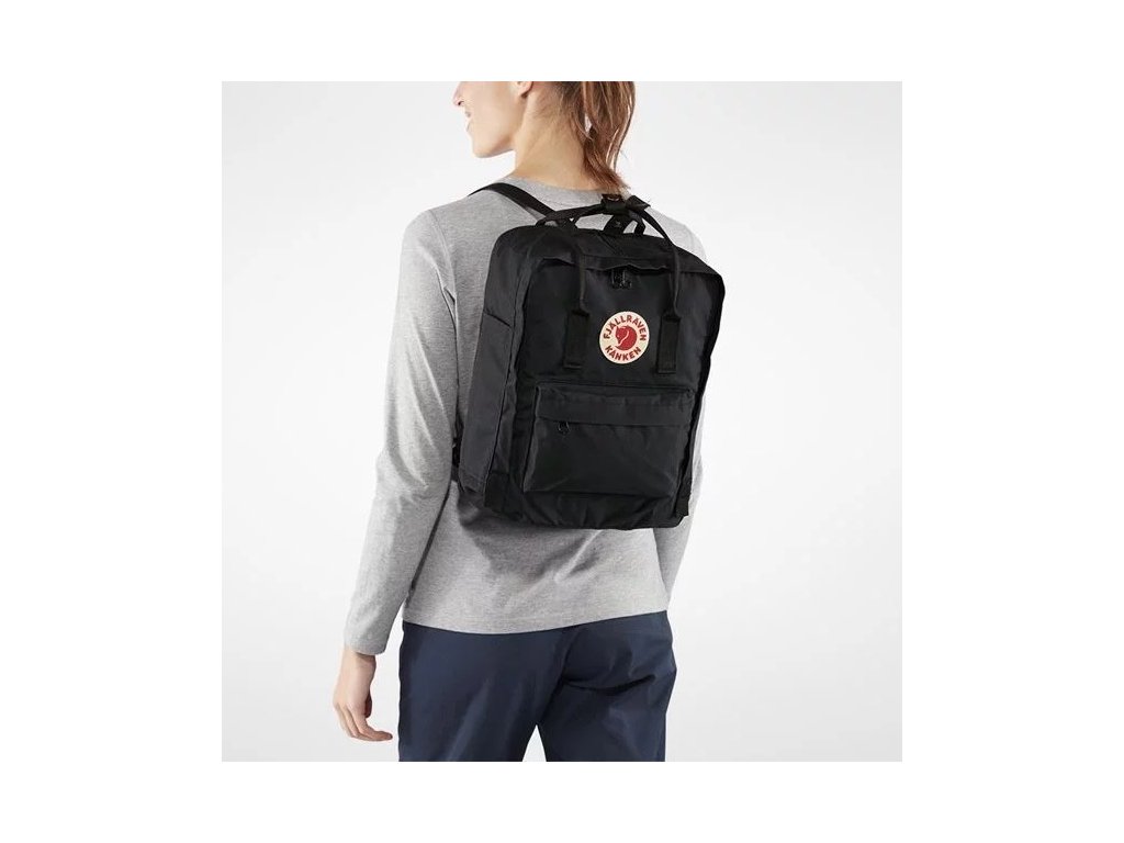 Klasický batoh Kanken se zipem, kterým lze otevřít celý hlavní prostor, je vyrobený z velmi odolného vinylonu. Batoh má vyjímatelnou podložku na sezení, mírně vypolstrované ramenní popruhy a madlo na vrchu. Zdobí ho reflexní logo.