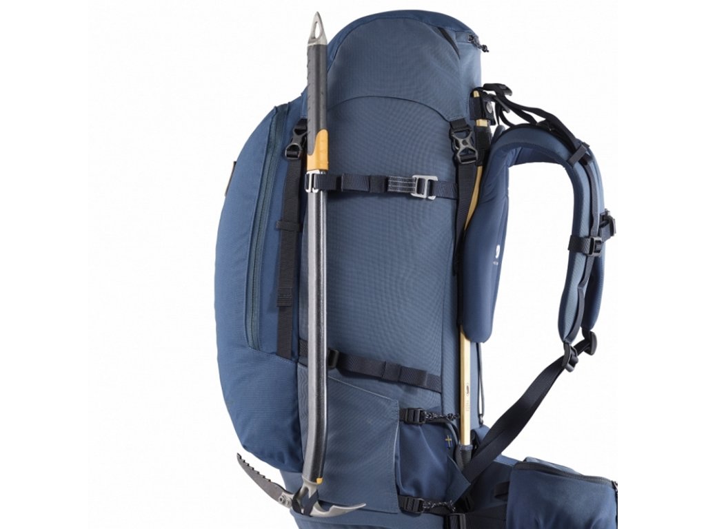 Pevný ergonomický batoh k celoročnímu užívání je vybaven oceňovaným dřevěným rámem Fjällräven a vyroben z odolných udržitelných materiálů, které vás podrží během dobrodružství v nehostinném terénu po mnoho let. Štíhlý profil poskytuje svobodu pohybu a dobře rozvržené přihrádky vám usnadní organizaci vybavení – jako například přední kapsa, do které se vejde extra vrstva, když se budete chtít rychle přiobléct, nebo malá lopatka. Nosný systém je navržen tak, aby rovnoměrně rozkládal velkou zátěž a byl snadno nastavitelný pro různé délky zad. Odolný materiál G-1000 Heavy Duty Eco S se skládá z recyklovaného polyesteru a bio bavlny. Dno a strany jsou z voděodolného materiálu Bergshell z částečně recyklovaného nylonu. Jedinečný dřevěný rám Fjällräven snižuje emise CO2 o 90 %. Pohodlný pevný nosný systém má nastavitelnou délku zad. Držáky slouží k uchycení lyží a cepínů či holí a poutka jsou určena na expediční sáně.
