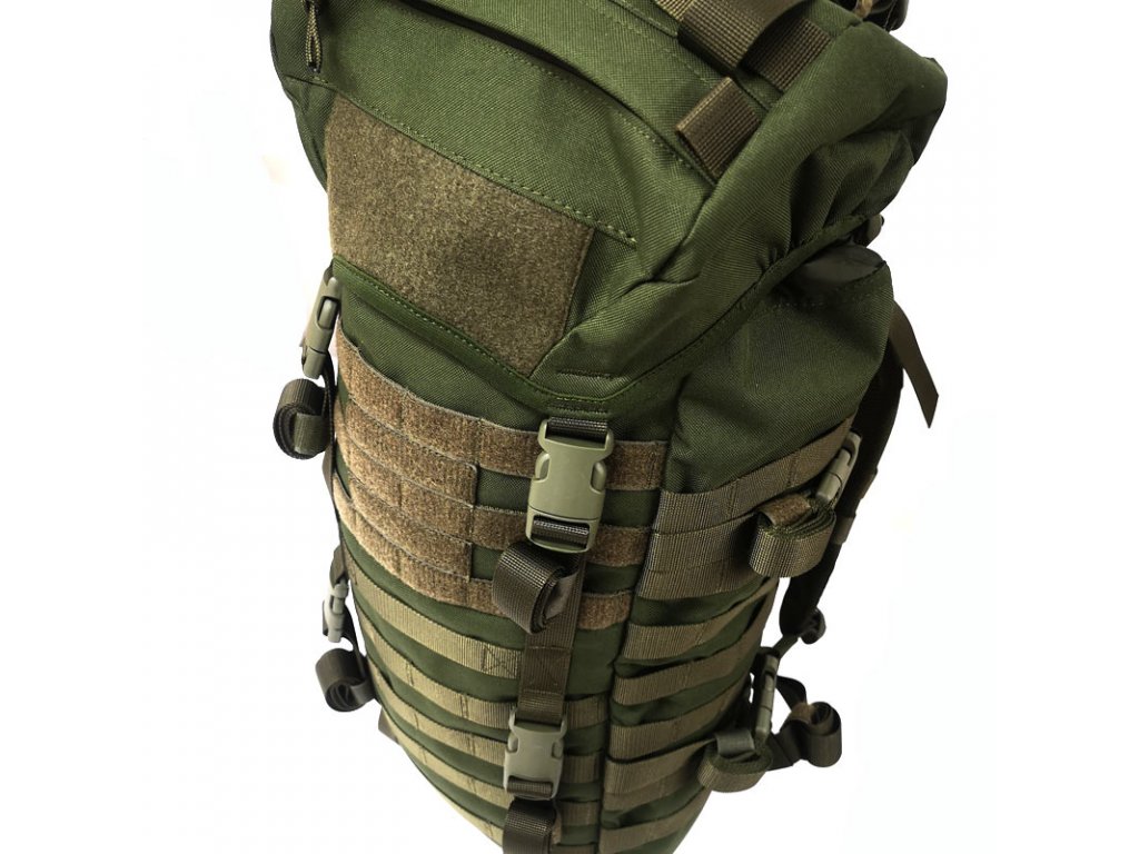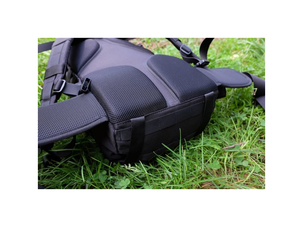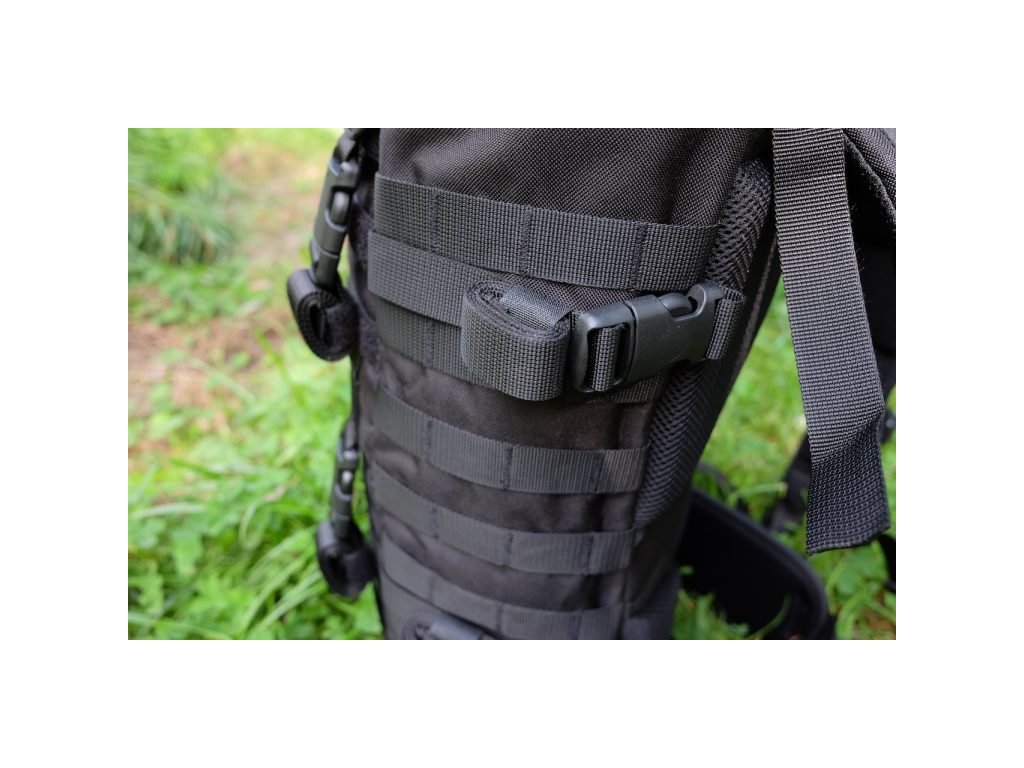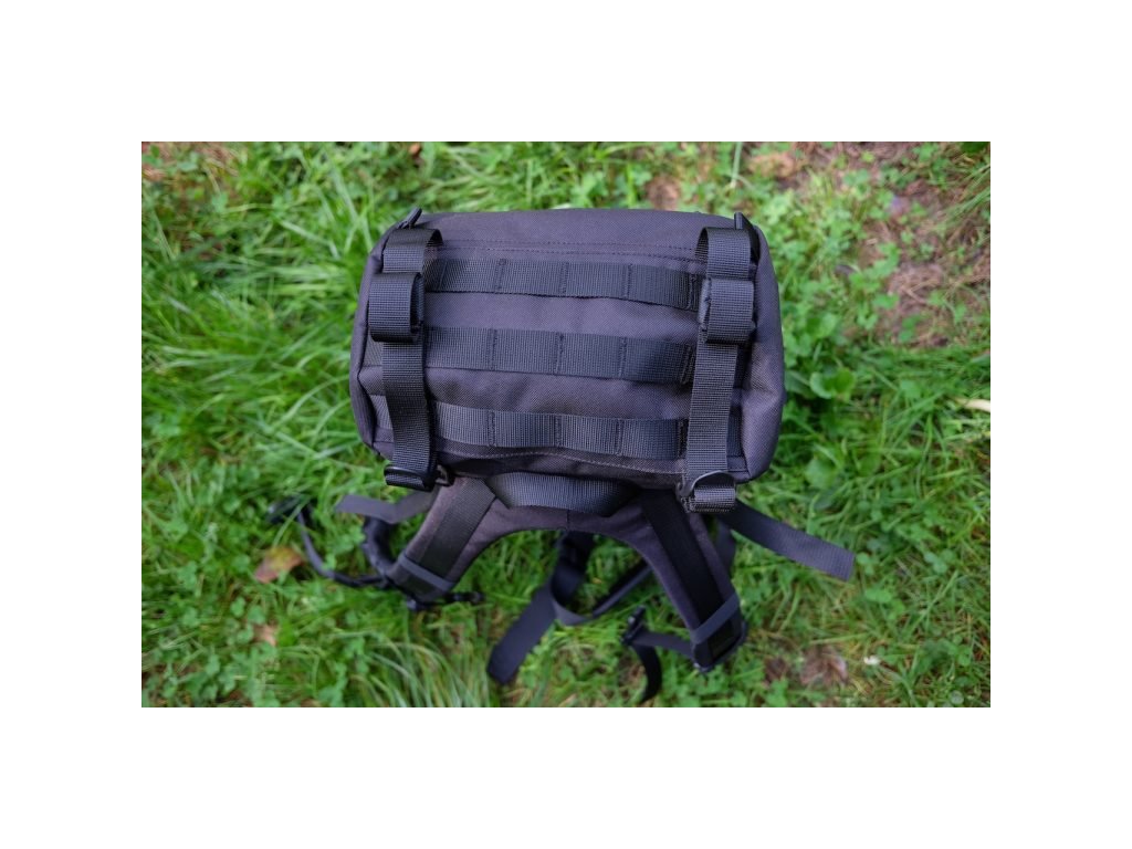 • Batoh má namísto vnějších a bočních kapes molle / pams vazby, díky kterým si batoh upravíte doplňkovými kapsami (sumkami) k obrazu svému. Na čelní straně batohu jsou v horní části molle vazby s velcro (suchým zipem) úpravou pro umístění nášivky nebo rychlo-odnímatelné VELCRO sumky.