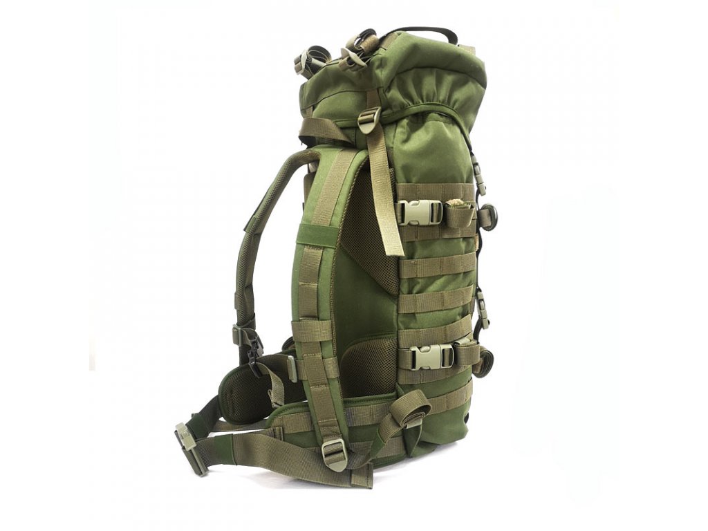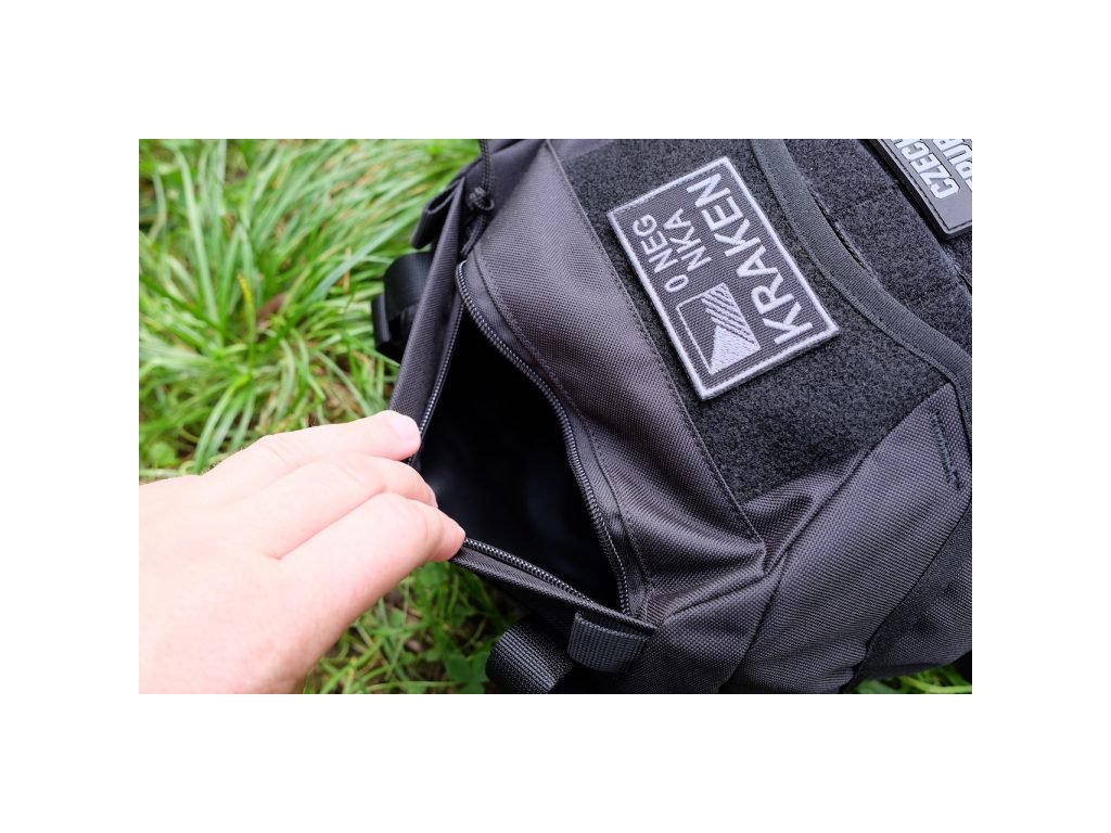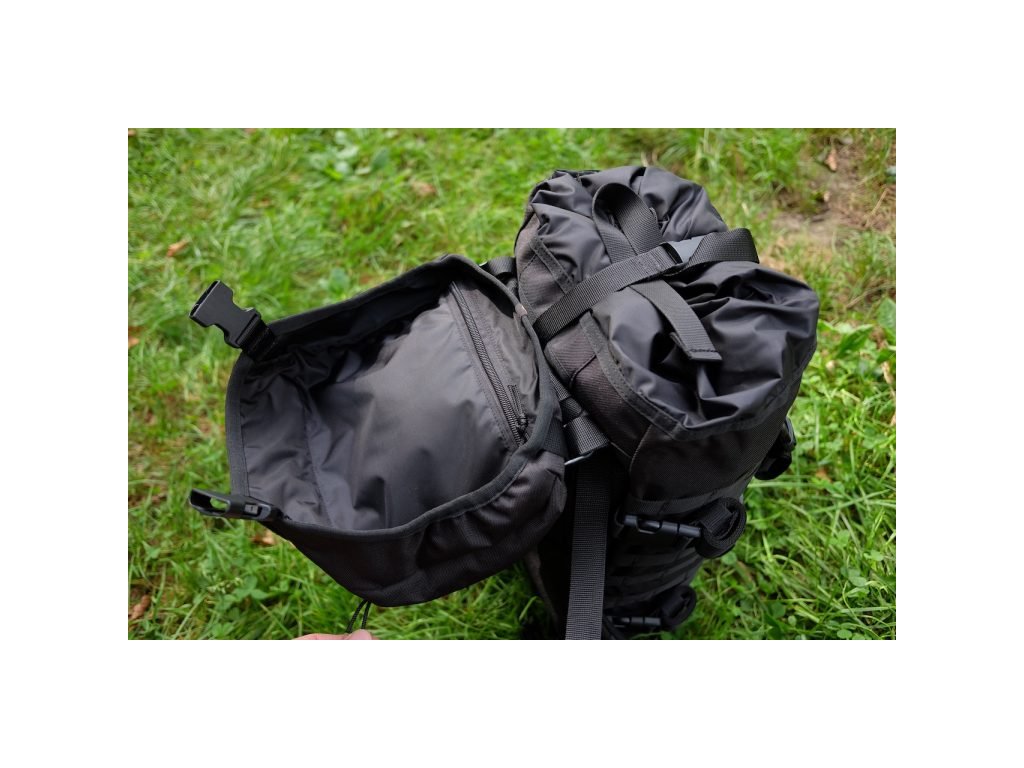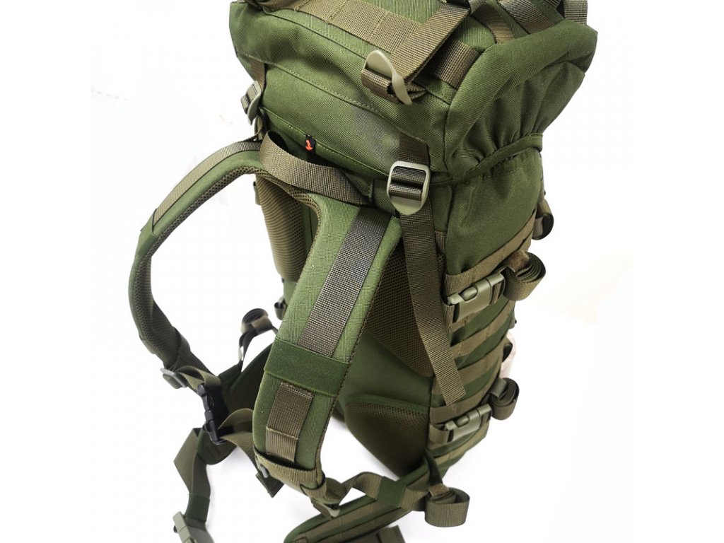 • Batoh má namísto vnějších a bočních kapes molle / pams vazby, díky kterým si batoh upravíte doplňkovými kapsami (sumkami) k obrazu svému. Na čelní straně batohu jsou v horní části molle vazby s velcro (suchým zipem) úpravou pro umístění nášivky nebo rychlo-odnímatelné VELCRO sumky.