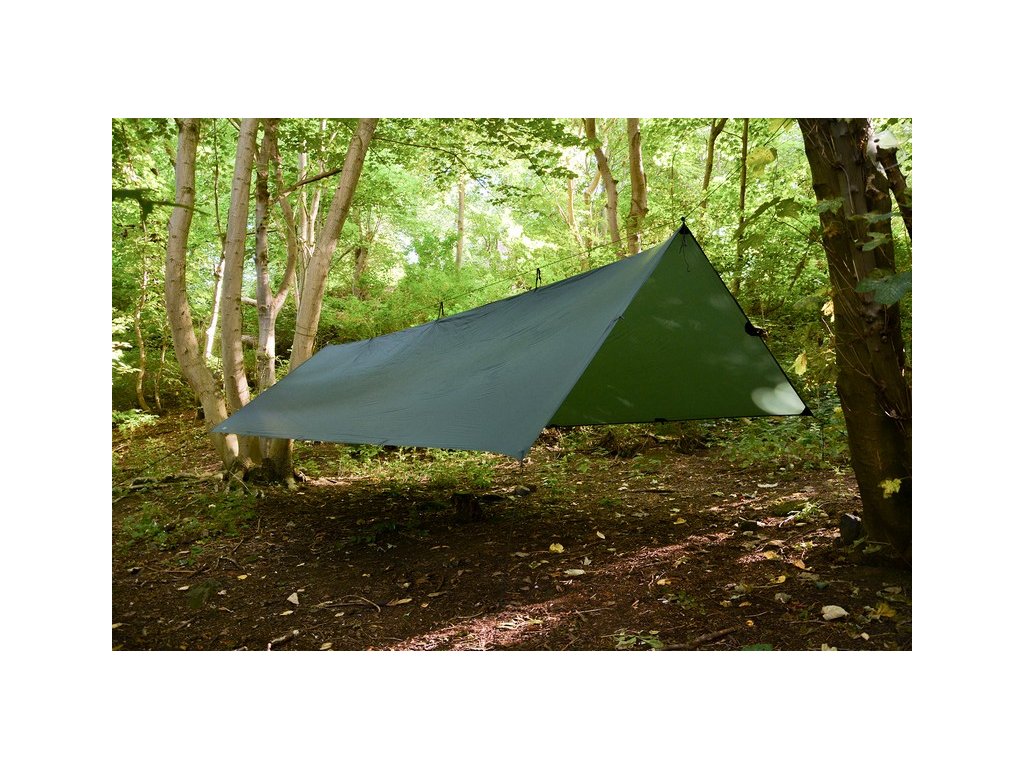 Rozměr 3x2,9m - čtvercový tvar, nekompromisní prostor, podlepené švy, 19 mohutně vyztužených vázacích ok, včetně tří ok v hřebenové linii. Je možné využít jako samostatný-ultralehký bivakovací přístřešek s možností stavby celé řady typů přístřešků nebo např. v kombinaci s hamakou.