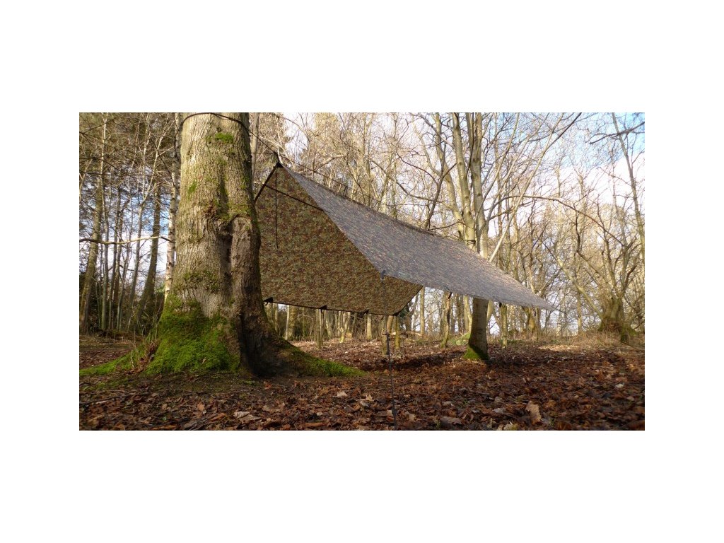 Rozměr 3,5x3,5m čtvercový tvar, nekompromisní prostor, podlepené švy, 19 mohutně vyztužených vázacích ok, včetně tří ok v hřebenové linii. Je možné využít jako samostatný-ultralehký bivakovací přístřešek s možností stavby celé řady typů přístřešků nebo např. v kombinaci s hamakou.