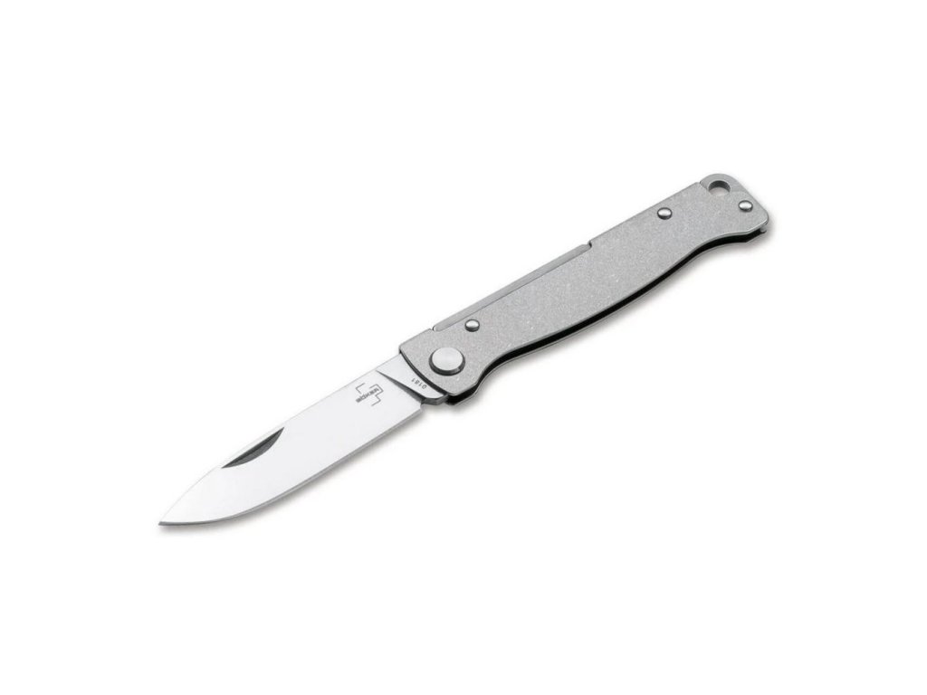 Böker Plus Atlas SW je přesně ten typ nože, který nosíš denně, ale nikdy tě nepřestane bavit. Jednoduchý, odolný a tak trochu oldschool – slipjoint mechanika bez zámku, čepel Sandvik 12C27 a tělo z šedé nerezové oceli se stonewash povrchem.