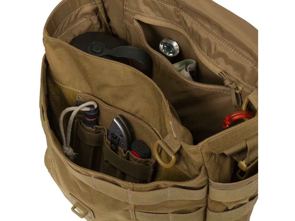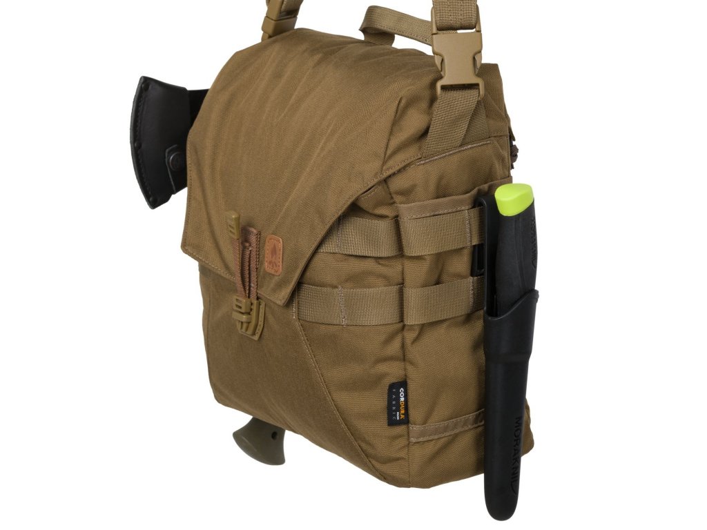 Na první pohled je Haversack jednoduchý, ale ve skutečnosti jde o propracované vybavení z řady Helikon Bushcraft. V klidu do ní nabalíte např. láhev vody, jídlo a vybavení pro rozdělání ohně. Její hlavní část je zakrytá klopou s klasickým britským zapínáním z 80. let. V přední kapse je možné připevnit vložky ze systému VIS. Po stranách můžete umístit sekeru, pilu nebo nůž. Na popruhy kompatibilní s MOLLE / PALS lze připevnit další vybavení, lékárničku nebo pouzdro. Pohodlně se celá taška nosí na tlustém pásku o šířce 50 mm. Haversack je moderní taška s pohledem na vybavení minulého století.