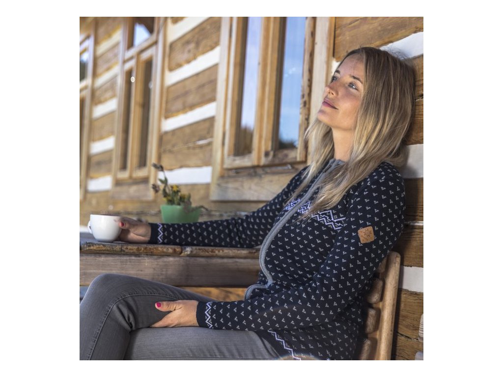 Dámský svetr s dlouhým zipem se díky drobnému vzoru a hladkému úpletu hodí k většině kalhot a sukní. Kvalitní příze firmy Schoeller zaručuje dlouhou životnost a snadnou údržbu.