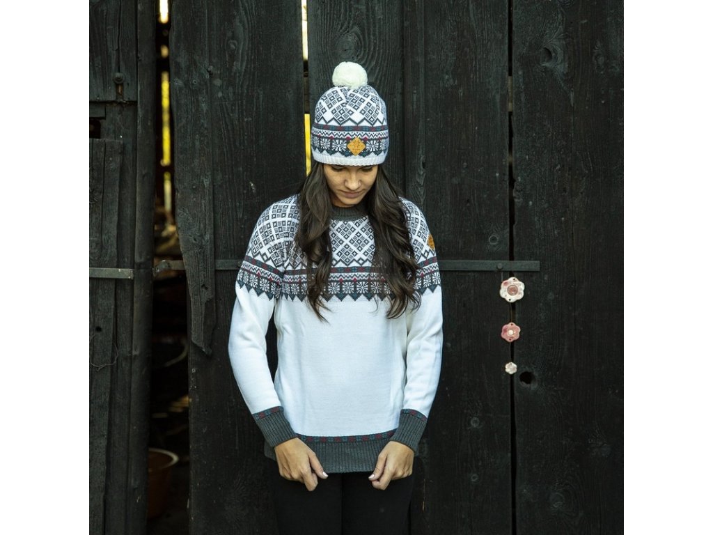 Dámský svetr s originálním vzorem a patenty v kontrastním odstínu si oblíbíte nejen díky jeho vzhledu, ale také kvůli příjemnému materiálu. Příze Schoeller jsou vyráběny s ohledem na životní prostředí a nesou ekologický certifikát bluesign®.