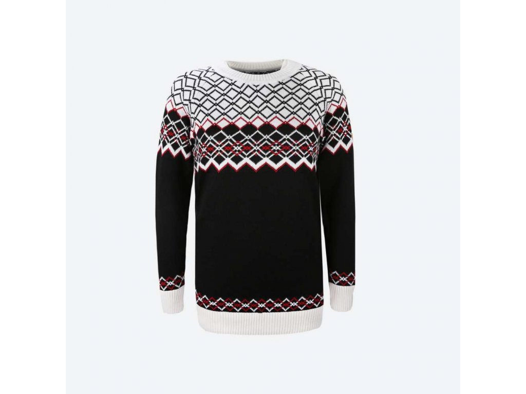 Dámský svetr s nápaditým vzorem a patenty v kontrastním odstínu si oblíbíte nejen díky jeho vzhledu, ale také kvůli příjemnému materiálu a střihu. Tělo má prodlouženou délku . Svetr je vhodný do chladného počasí jak ve městě, tak na horách.