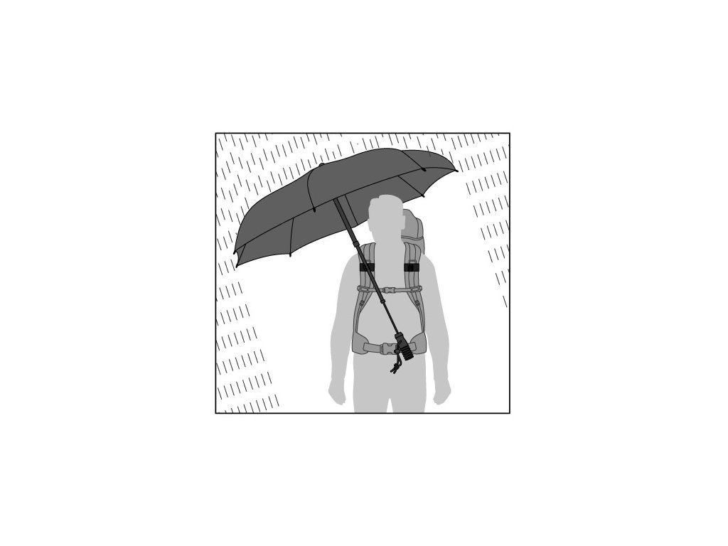 • kompaktní a lehký trekový deštník, který lze snadno připevnit k většině standardních popruhů batohu