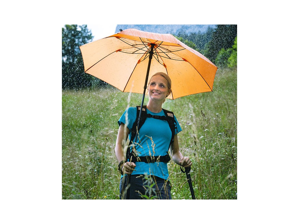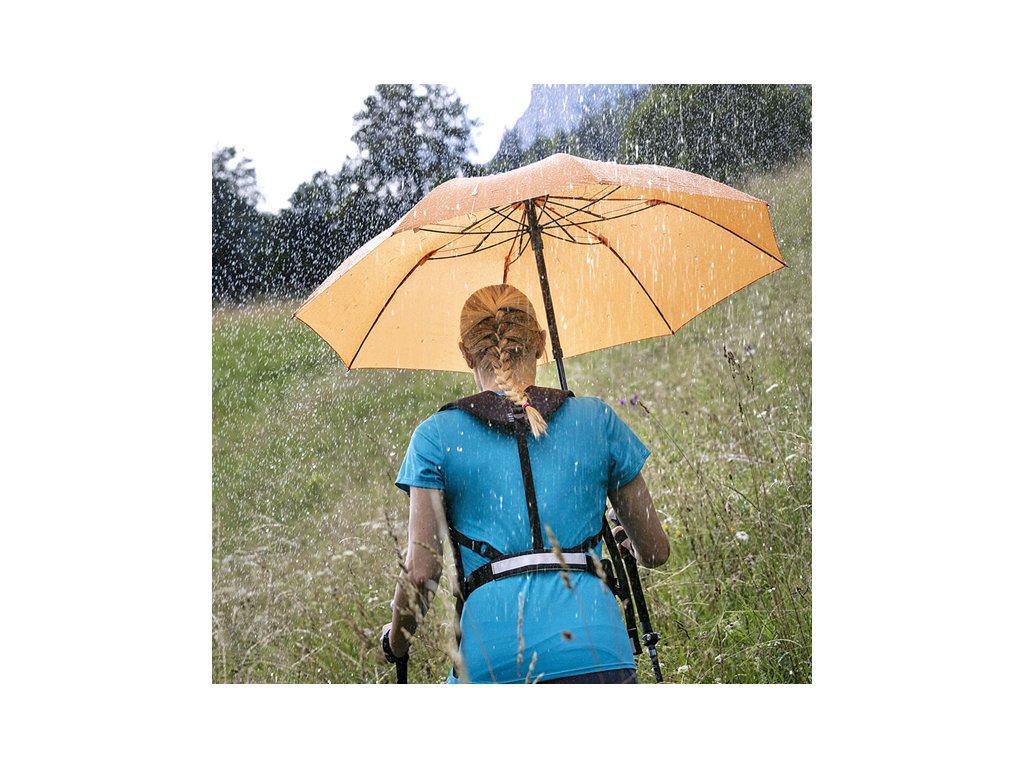 Pokud nepatříte mezi fandy pláštěnek a ponč, může Vám posloužit tento deštník vč. systému HandsFree díky němuž připevníte deštník jednoduše k batohu a Vaše ruce tak zůstanou vždy volné ať už jdete s trekovými holemi nebo chce schovat ruce do kapes.