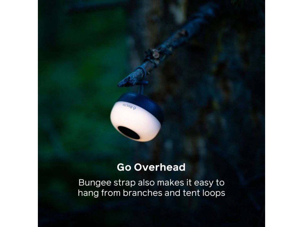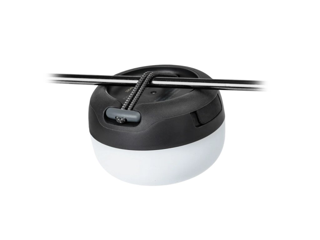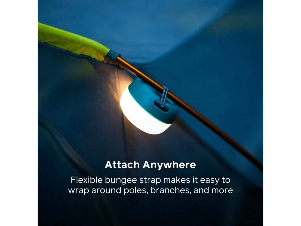 Lucerna je vybavena integrovaným pružným bungee popruhem, takže ji můžeš snadno zavěsit na tyč stanu, větev nebo batoh – ideální pro rychlé nastavení osvětlení kdekoliv v terénu.