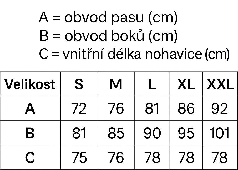 Velikostní tabulka: