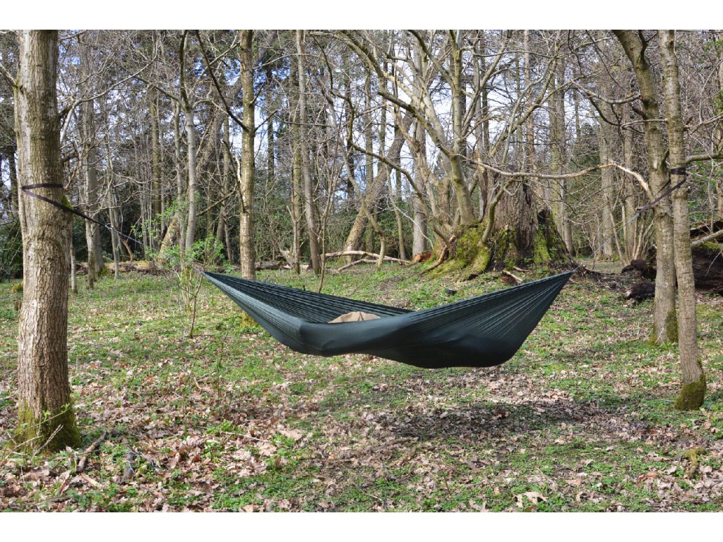 Ultralehká a současně velmi prostorná hamaka může být součástí SuperLight bivakovacího setu. Kompletní SuperLight bivi set obsahující tuto hamaku + moskytiéru + krycí plachtu váží neskutečných 920g a celý je ho možné nést v podstatě po kapsách.