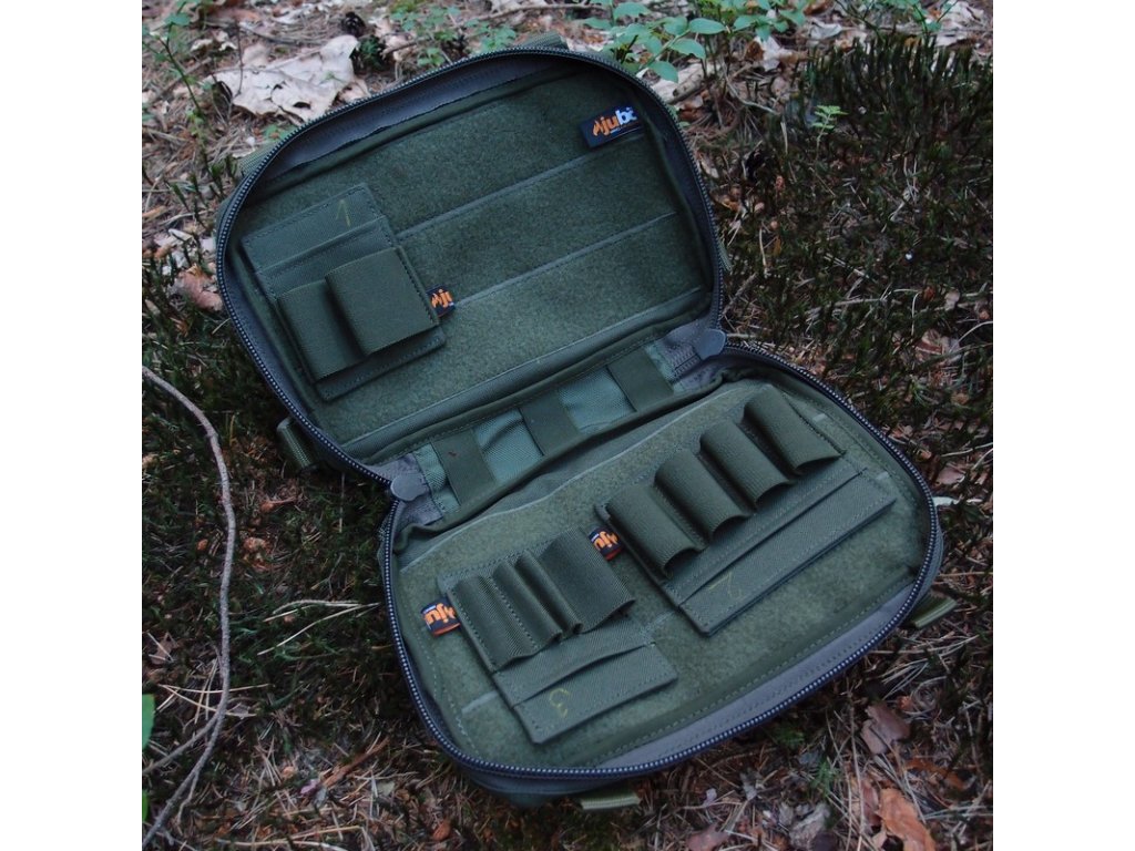 Brašna pojme zbraň velikosti G19, 1911 nebo CZ 75 a podobně.