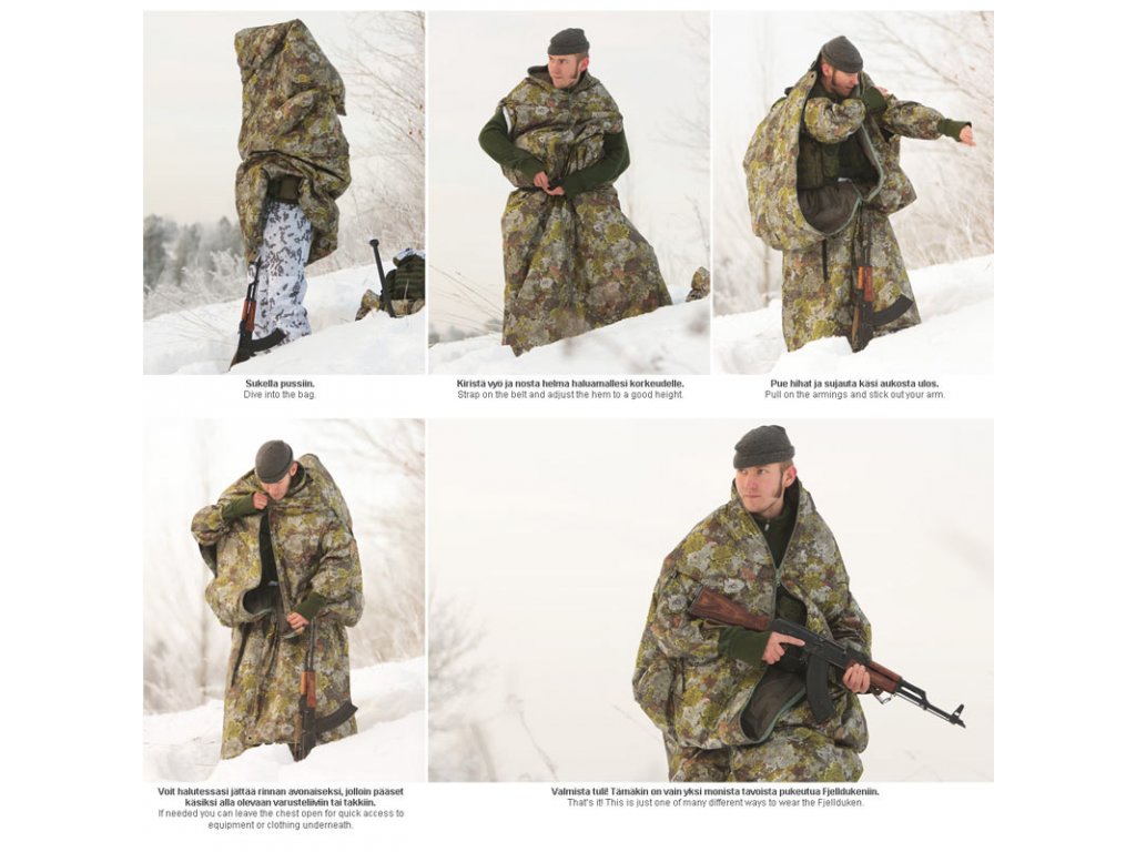Jerven Bag, to je téměř slang mezi lovci, outdoor specialisty a vojáky po celém světě. Jerven vyrábí Fjellduken od roku 1982, kromě častého loveckého použití napříč planetou je vidět Fjellduken také v Afghánistánu v rukou norských a dánských speciálních sil a dokonce i finské obranné síly nedávno přijaly vaky Jerven pro arktické použití.