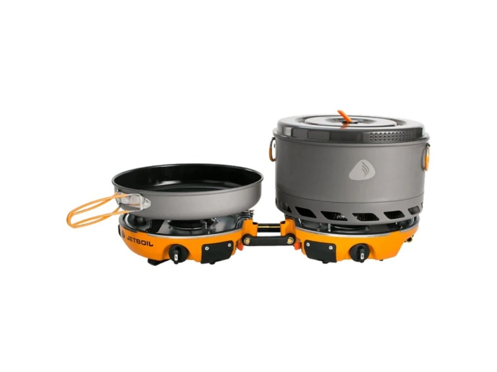Jetboil Genesis Basecamp je revoluční kempingový vařič, který v terénu nahradí klasický kuchyňský sporák. S dvěma hořáky o výkonu každý 10 000 BTU a integrovaným piezo zapalováním vám zajistí pohodlné vaření bez shánění sirek či zapalovače.