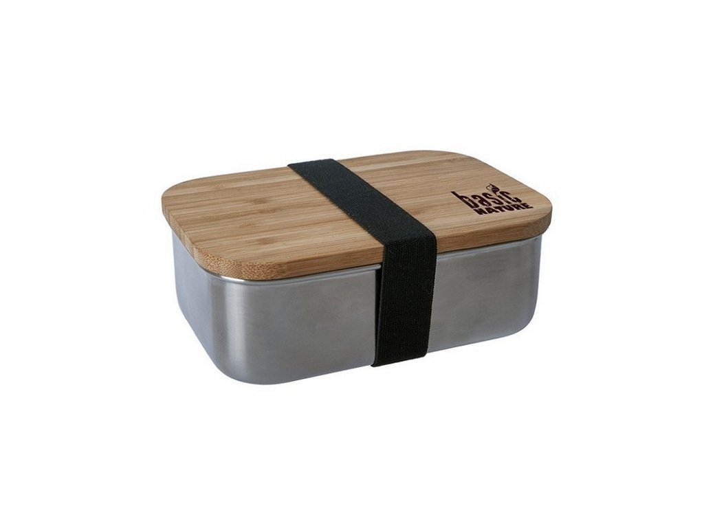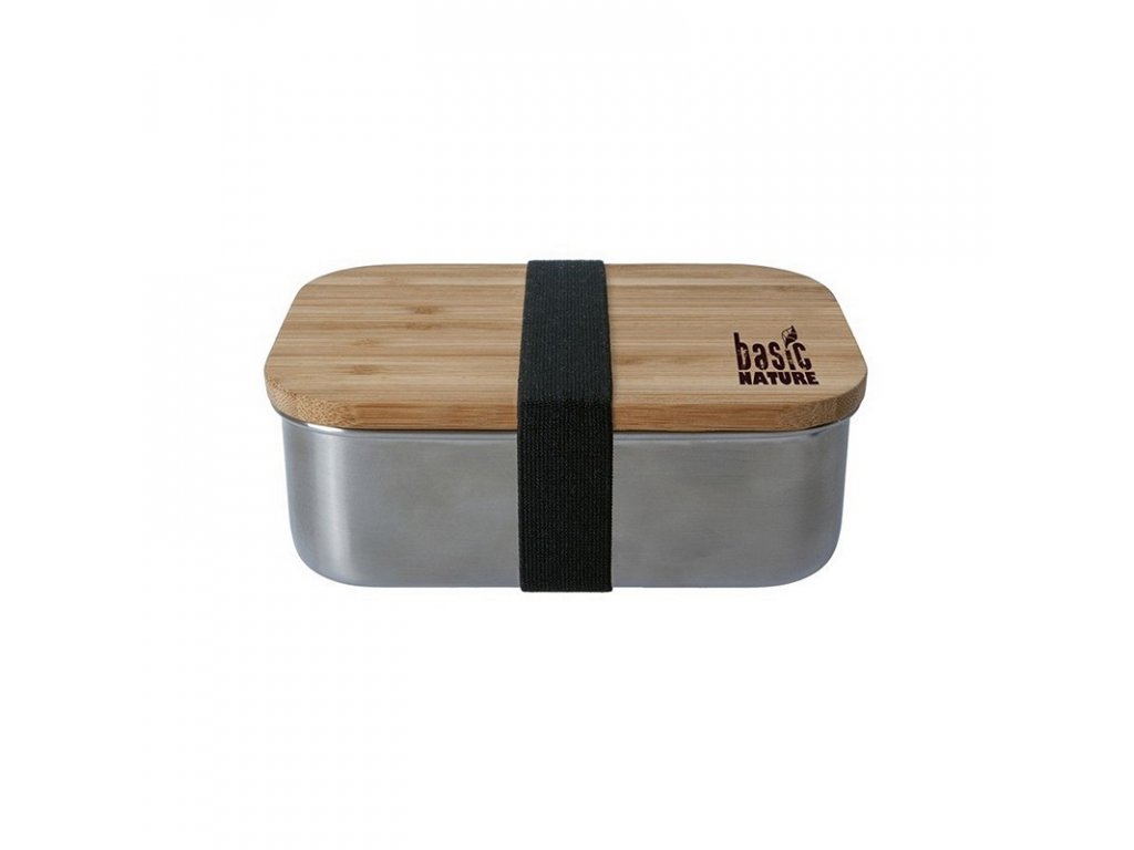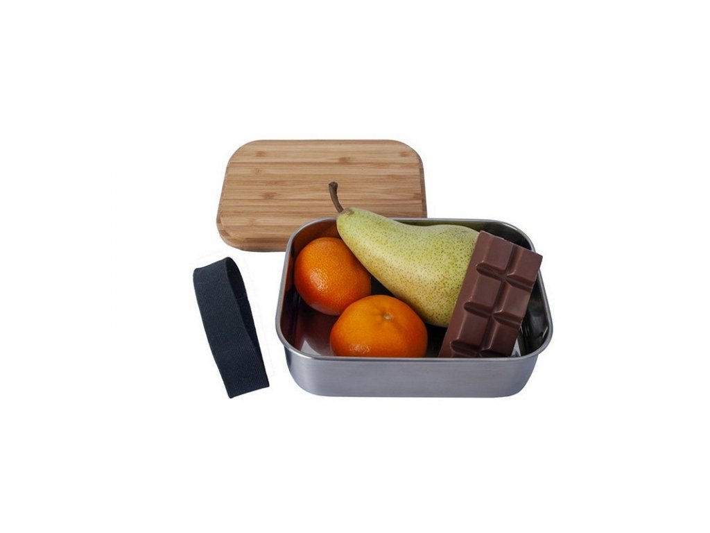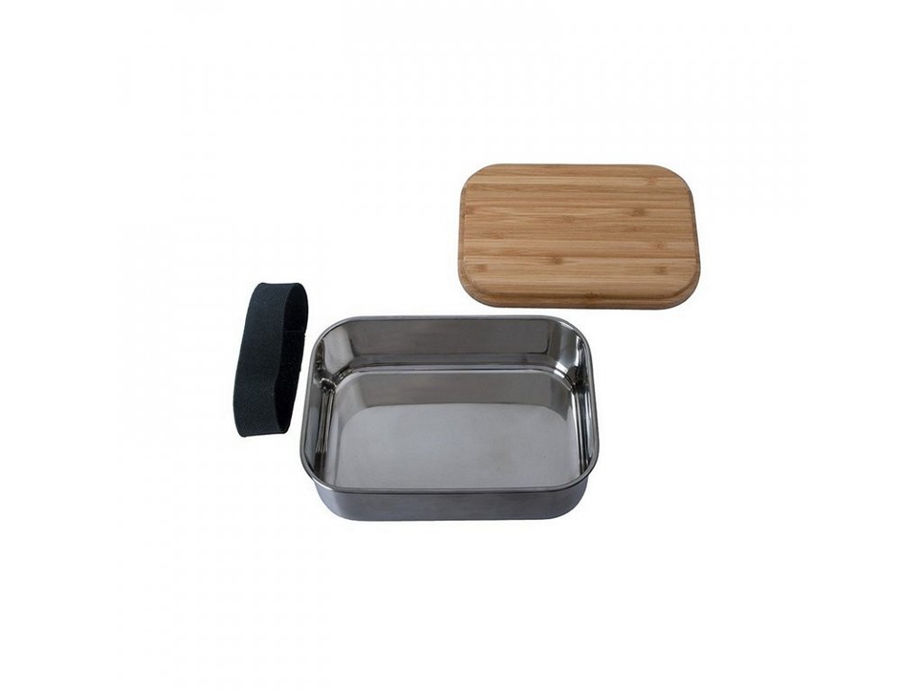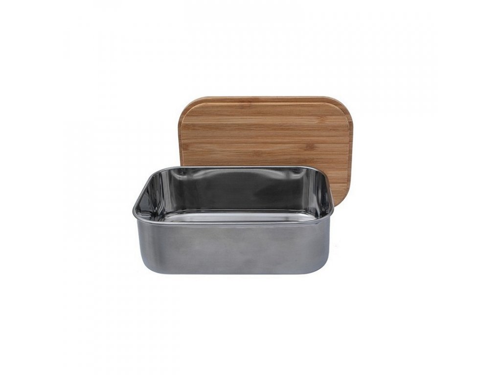 Kvalitní jídelní/obědový box vyrobený z odolné nerezové oceli. Box je vybaven přírodním víkem z jakostního bambusového dřeva, které zároveň slouží jako praktické prkénko pro další úpravu pokrmů. Nechybí ani praktická guma zabraňující nechtěnému otevření boxu při přepravě.