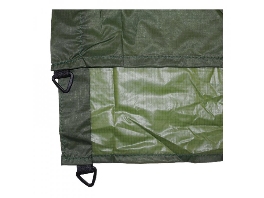 Pomocí příslušenství DUO (duralový oblouk, spojovací popruh a kotvící šňůry s kolíky) z ní lze vytvořit jednoduchý přístřešek proti dešti pro spaní ve volné přírodě.