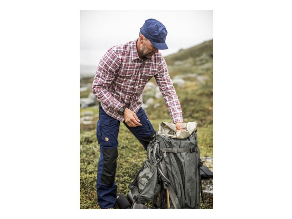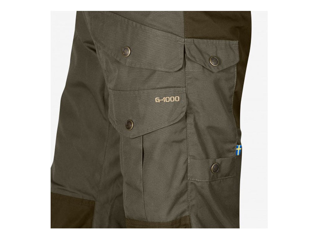 Odolné trekkingové kalhoty určené na dobrodružné výpravy v horách i lesích. Vyrobené z trvanlivé tkaniny G-1000® odolné proti větru a vodě s dvojitou vrstvou na hýždích a kolenou. Normální pas (střední pas) a normální střih s anatomicky tvarovanými koleny. Šest praktických kapes včetně kapsy na mapy a na sekyrku. Na spodním lemu nohavic jsou elastické pásky s patentními knoflíky k nastavení délky. Vybaveny kapsami na kolenní chrániče (doplněk).