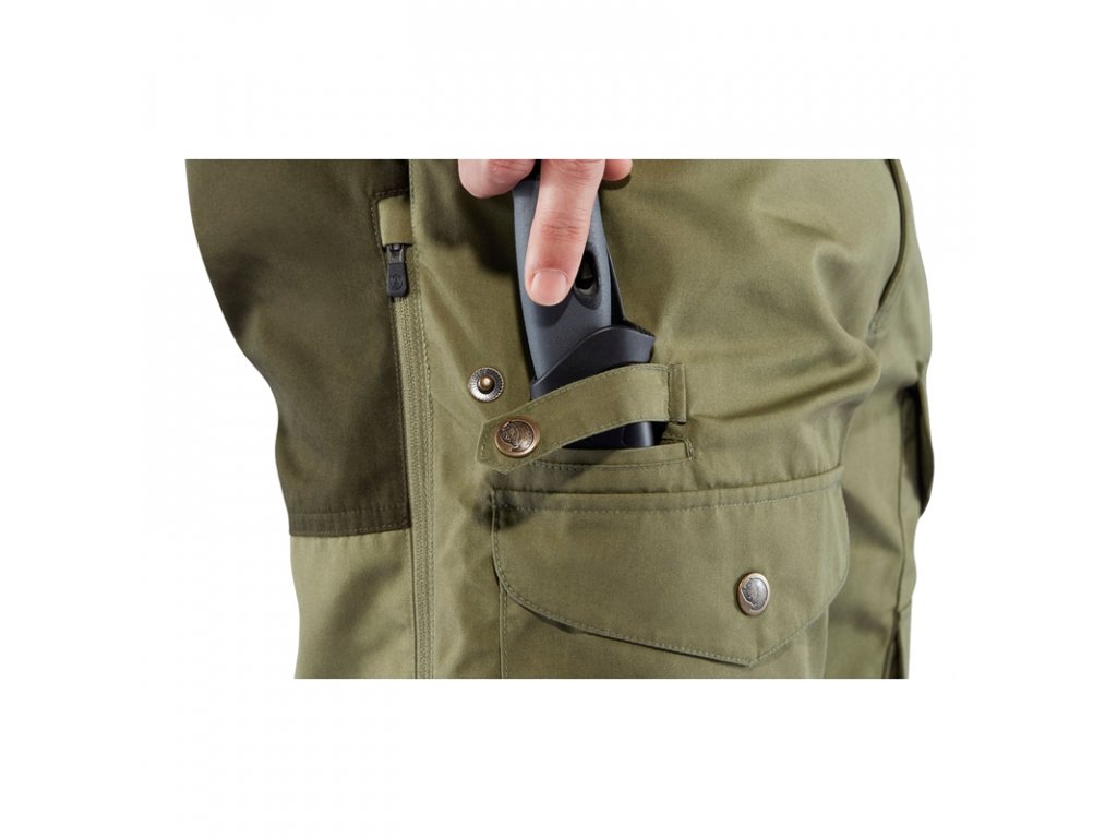 Odolné trekové a bushcraft kalhoty s technickými funkcemi vyrobené z větruvzdorného a voděodolného G-1000 Eco. Tento model, vycházející z našich nejprodávanějších kalhot Vidda Pro, má vylepšené funkce odvětrávání a nový, štíhlejší střih, který poskytuje skvělou svobodu pohybu. Nastavovací popruhy na knoflíky na zakončení nohavic lze odepnout. Kalhoty jsou vybaveny mnoha praktickými kapsami a funkcemi, jako je kapsička na nůž na pravé nohavici nebo poutko na cepín u pasu.