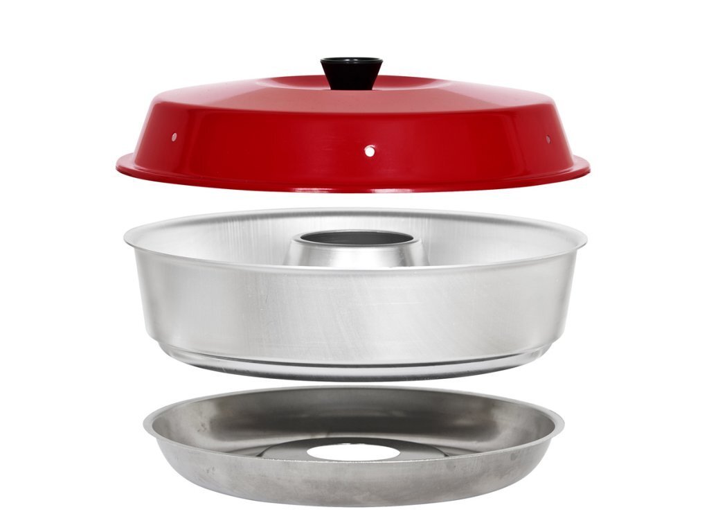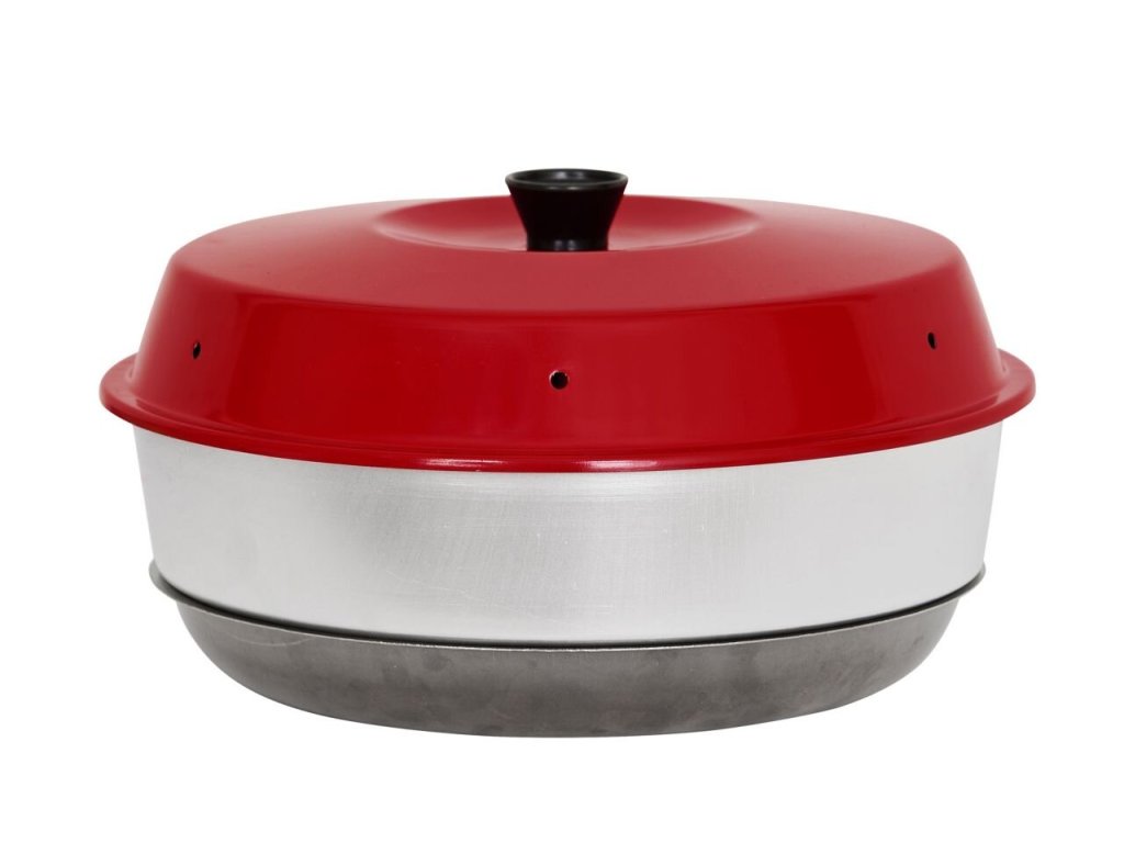 - Pekáč z hliníku s vyvýšeným středem a dírou na dně, kterou proudí žár přímo k vašim pokrmům.