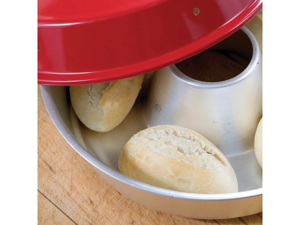 - Pekáč z hliníku s vyvýšeným středem a dírou na dně, kterou proudí žár přímo k vašim pokrmům.