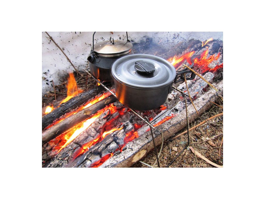 - skládací kempinkový gril k umístění nad oheň