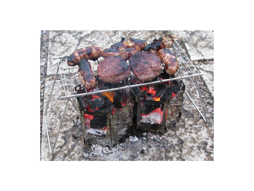 Praktický gril na cesty. Díky skládací konstrukci jej snadno umístíte do batohu a grilovat na ohni tak můžete téměř kdekoliv na otevřeném ohništi.
