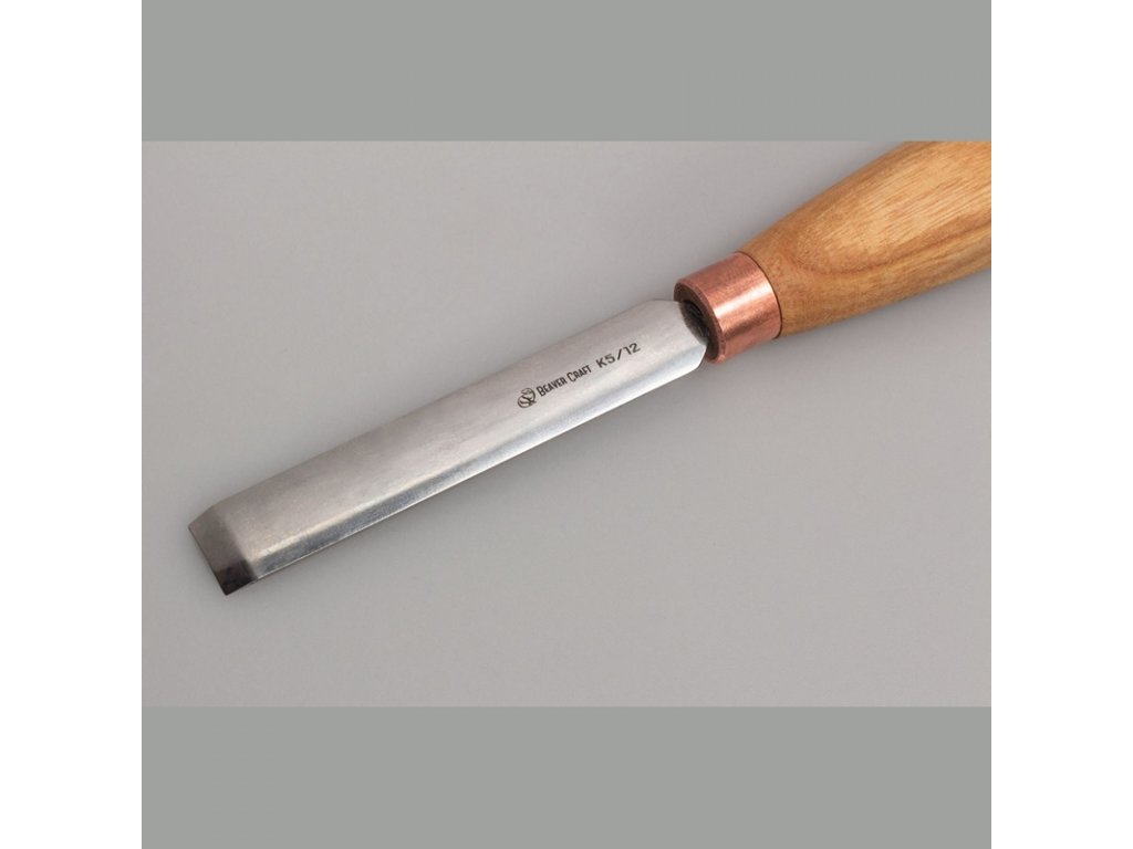 Toto kompaktní řezbářské dláto má rovnou hranu s jednoduchým zkosením a kratší čepel o šířce 12 mm, což z něj činí vhodný nástroj pro základní tvarování povrchu. Jeho pohodlná rukojeť má kompaktní design a je vhodná jak pro začátečníky, tak i profesionální řezbáře.