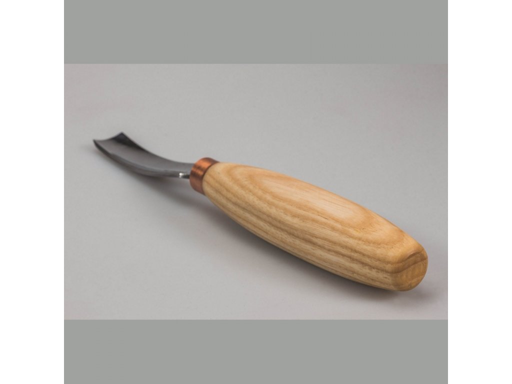 Toto kompaktní prohnuté řezbářské dláto je ideální pro hluboké, avšak precizní řezy, což ho činí skvělým nástrojem pro vytváření vyřezávaných předmětů, jako jsou lžičky, misky, Kuksy a další výrobky. Má kratší čepel o šířce 15 mm a ergonomickou rukojeť, která je kompaktní a pohodlná.