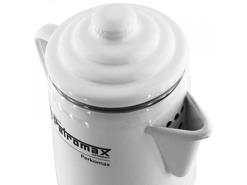 Konvice - kávovar Petromax Percolator umožní díky svému objemu cca 1,5l připavit až 9 šálků Vašeho oblíbeného nápoje a lze jej použít pro všechny typy vařičů, vč. otevřeného ohně. Jako materiál je použit silnostěnný smalt, nesrovnatelný s použitým materiálem konkurenčích snaltových nádob. Samotný systém překapávání převařené vody "Perkomax" lze z konvice snadno vyjmout.