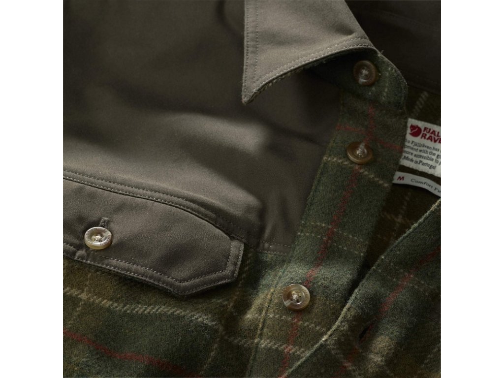Odolná, teplá dřevorubecká košile je vyrobena ze silného flanelu z vlněné směsi se zpevněním z materiálu G-1000 na ramenou a patkách kapes. Tkanina spojuje izolační vlastnosti vlny a odolnost polyesteru, díky čemuž vzniká zimní oděv, který vás udrží v teple i ve vlhku. Pohodlný střih a sklady sedací části slouží pro větší pohyblivost. Vpředu je košile na knoflíky a má dvě náprsní kapsy s knoflíkem.