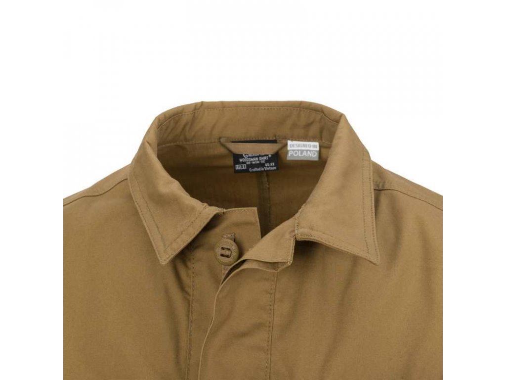 Vyrobeno z tkaniny DuraCanvas®, s dodatečnými výztuhami na loktech, bude dobře fungovat i v těch nejdrsnějších podmínkách. Aby se jeho uživatel mohl volně pohybovat, jsou na zadní straně našity pružné panely z materiálu VersaStretch. Odvětrávání v podpaží na zip poskytuje pohodlí při činnostech s vysokou námahou. Klasické náprsní kapsy na knoflíky snadno pojmou věci, jako je kapesní nůž, tinder, kompas atd. Plochá poutka lze použít k uvázání a zajištění předmětů přenášených v kapsách. Woodsman má dvě vnitřní síťované kapsy a jednu na zip ve stylu Napoleona. Samotná košile se zapíná na kanadské knoflíky obšité pevnou páskou.