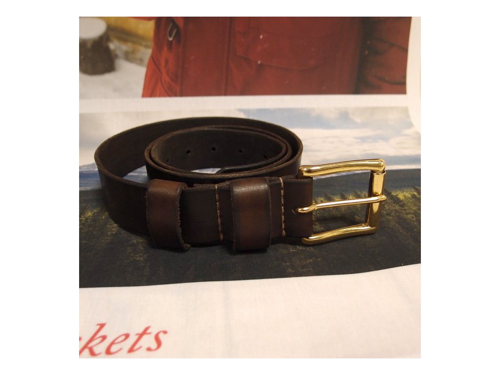 Ručně šitý opasek nejvyšší kvality z hovězí usně tloušťky 2,7 - 3,5 mm. Přezka odlitá z mosaze s doživotní trvanlivostí. K dispozici ve třech délkách. Jedná se o kusovou výrobu, odstín se může mírně lišit.