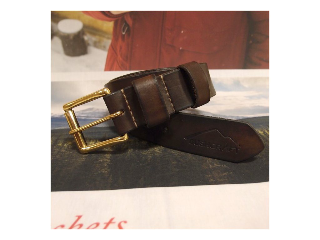 Kožený opasek JUBÖ Bushcraft (šitý) - hnědý (palisandr) - zlatá spona