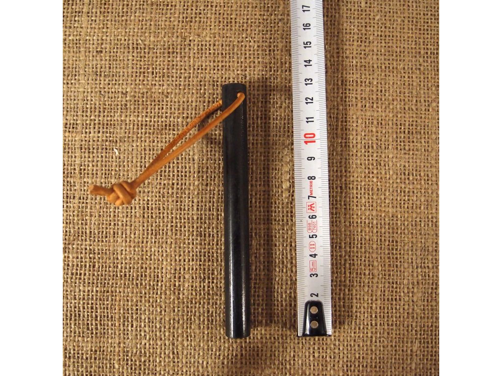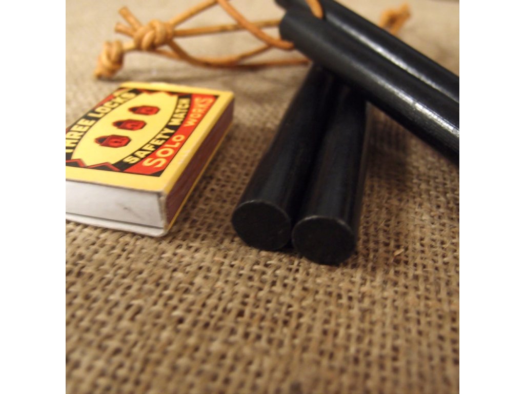Křesadlo JuBö Firesteel STICK je obrovská masivní ocílka o tloušťce 13 mm obohacená o magnesium, při křesání a velké množství jisker s vysokou teplotou. JuBö Firesteel Stick XXL je dodávána bez plíšku, lze křesat o jakoukoliv ostrou hranu, např. hřbet nože, pazourek, ostrá hrana kamene. V horní části je průvlek s navlečenou koženou šňůrkou.