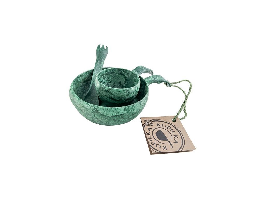 Výhodná sada nádobí KUPILKA! Kuksa je klasický severský hrnek, který má svou tradici v Laponsku, kde se v létě používá k nabrání vody z potoku nebo sběru lesního ovoce. V zimě jej můžete využít např. na čaj o který si následně hřejete ruce. Spork je vlastně lžičko-vidlička spojená do jednoho nástroje. Velmi oblíbená právě pro svou víceúčelové využití zejména při dobrodružstvích v přírodě. No a miska se skvělě hodí k servírování jakéhokoliv jídla, ať už v tekuté nebo tuhé formě! Prostě komplexní sada ideální pro děti a juniory!