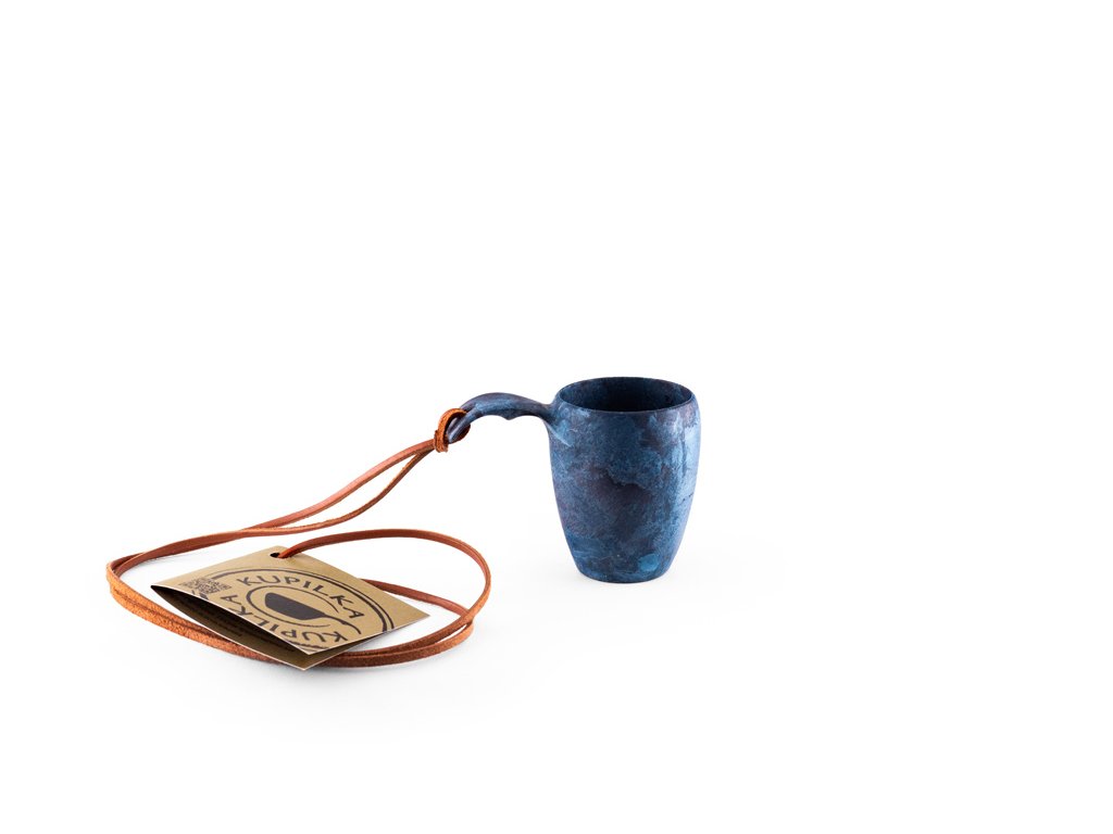 Kupilka 5 cl na ranní espresso nebo oblíbený likér. Tento krásný hrneček připomínající šperk můžete nosit na krku díky koženému řemínku ze sobí kůže. Sobí kůže je jedinečně měkká, tenká a odolná. Je také považována za etickou variantu, protože sobi žijí většinu svého života volně a kůže se získává jako vedlejší produkt při výrobě potravin.