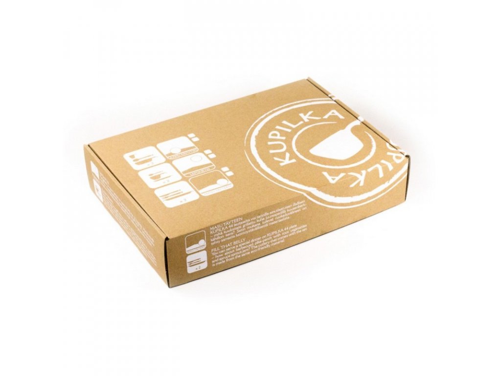 KUPILKA výrobky jsou vyrobeny z biomateriálu. Termoplastický kompozit obsahuje 50% celuozních vláken borovice a 50% plastu. V porovnání s plastem, má tento materiál vyšší tepelnou odolnost a delší životnost, díky husté kompozitní struktuře. Na rozdíl od plastu, do něj může být ryto. Srovnáme-li tento materiál se dřevem, velké výhody si všimnete hned. Žádná údržba, neabsorbuje pachy a není citlivý na vlhkost.