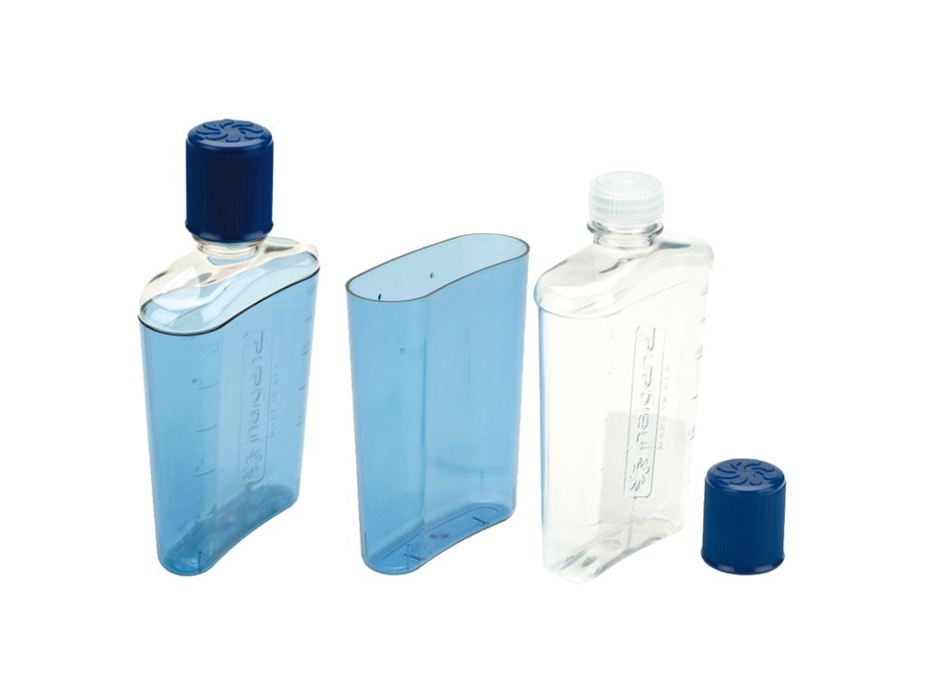 Láhev NALGENE Flask 0,300 l. Tato polní lahev Nalgene je klasická placatka s polykarbonátovým izolačním návlekem vyrobené z kvalitního a odolného polyetylenu. Ideální lahev na nápoje se vejde do každé tašky či batohu, do kabelky nebo i do větší kapsy. Je vhodná i pro dlouhodobější nošení tekutin, nepředává nápoji ani plastovou pachuť ani zápach. Víčko je šroubovací a poslouží jako kalíšek na pití. Lahev i její víko jsou nepropustné.