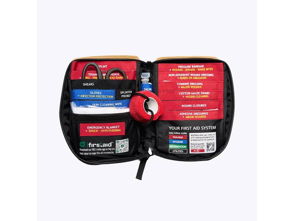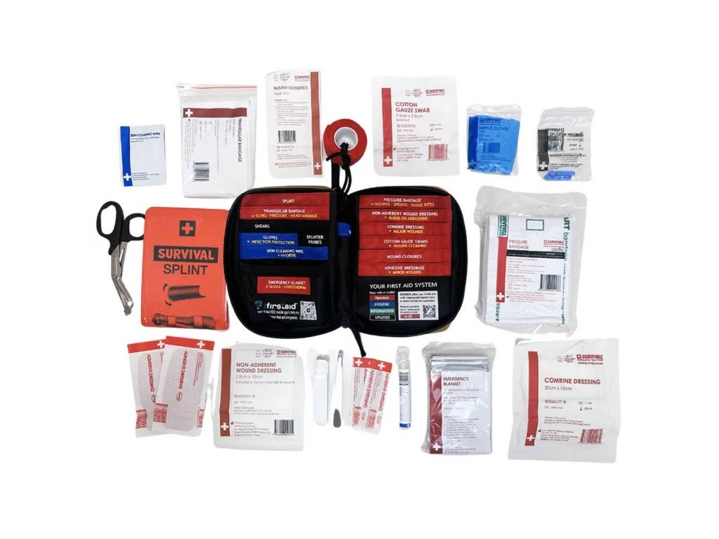 SURVIVAL First Aid KIT – Hiking je přesně ta lékárnička, kterou chceš mít po ruce – kompaktní, logicky uspořádaná a navržená pro reálné situace v terénu. Žádné zbytečnosti, jen vybavení, které opravdu funguje – včetně dlahy, chytrého tlakového obvazu SMART Bandage™ a přehledných návodů kompletně v češtině.