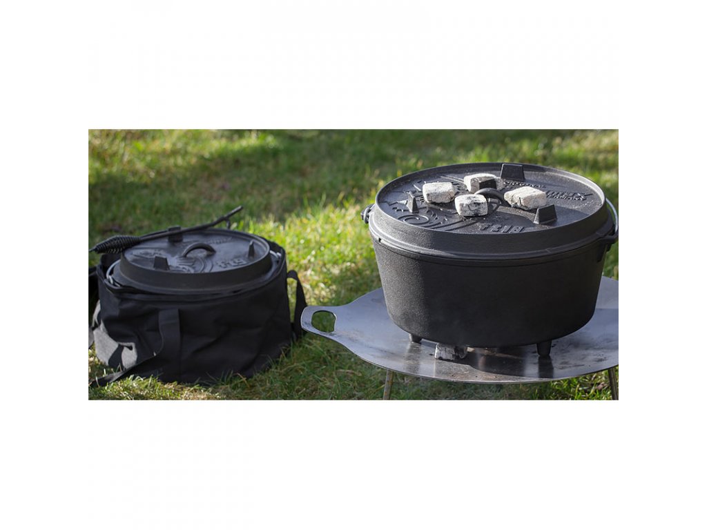 Ať už doma v troubě nebo na ohni v přírodě - s kotlíkem Petromax se maso a zelenina ve vlastní šťávě vždy dobře uvaří. Díky přizpůsobenému povrchu se snadno udržuje. Pokličku lze využít jako pánev, nebo jako tác na pokrmy. Kotlík může být dobrým pomocníkem při kempingu a outdoorových aktivitách. Při vaření doporučujeme zahrnout také víko žhavými uhlíky, díky čemuž docílíte rovnoměrného pečení v celém hrnci. Litinový materiál kotlíku je obzvlášť odolný a může dobře sloužit i dalším generacím.