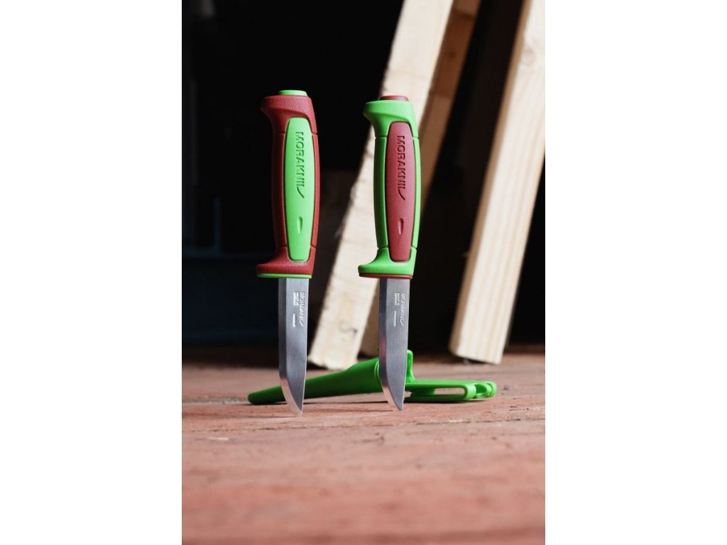 Morakniv Basic 546 s čepelí z nerezové oceli 12C27 je jedním z nejpoužívanějších a nejoceňovanějších nožů Morakniv. Pro rok 2024 je vyrobena s ergonomickou oblou rukojetí z plastu odolného proti skluzu v kombinaci zelená a červená.