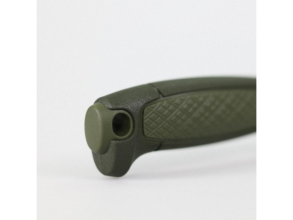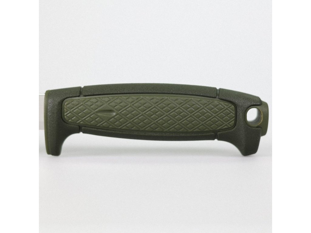 Čepel je z nerezové švédské oceli 12C27 (Alleima) s tvrdostí cca 56,5 HRC a se Scandi výbrusem pro dobrou kontrolu řezu. Rukojeť je z odolného polymeru se záštitou a otvorem na šňůru; v balení je i pouzdro s click-lock jištěním a možností nošení pro praváky i leváky.