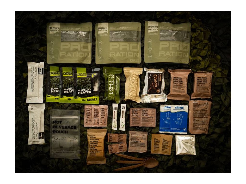 Tato potravinová dávka vás nejen zasytí a dodá potřebnou energii, ale v balíčku naleznete také nezbytné příslušenství pro přípravu a konzumaci jídla, hygienické potřeby, stejně jako dávku vitamínů a minerálů.