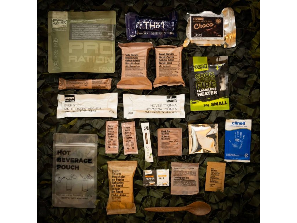 Tato potravinová dávka vás nejen zasytí a dodá potřebnou energii, ale v balíčku naleznete také nezbytné příslušenství pro přípravu a konzumaci jídla, hygienické potřeby, stejně jako dávku vitamínů a minerálů.
