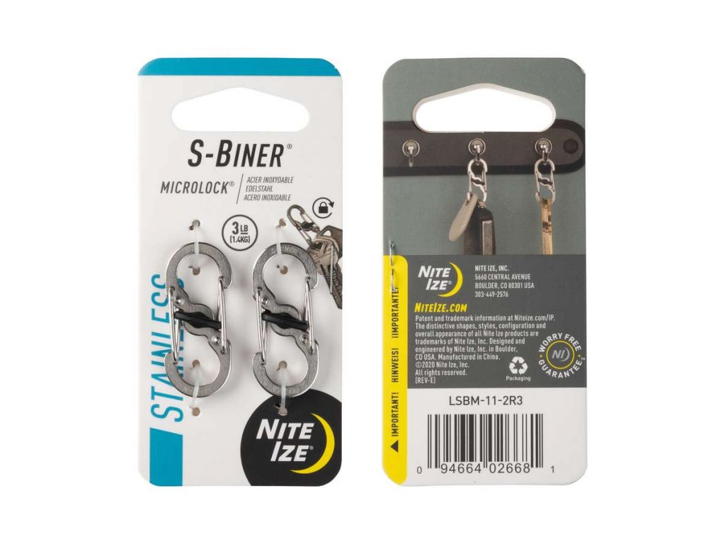 Nite Ize S-Biner Microlock oboustranná nerezová karabina - sada 2 ks - stříbrná